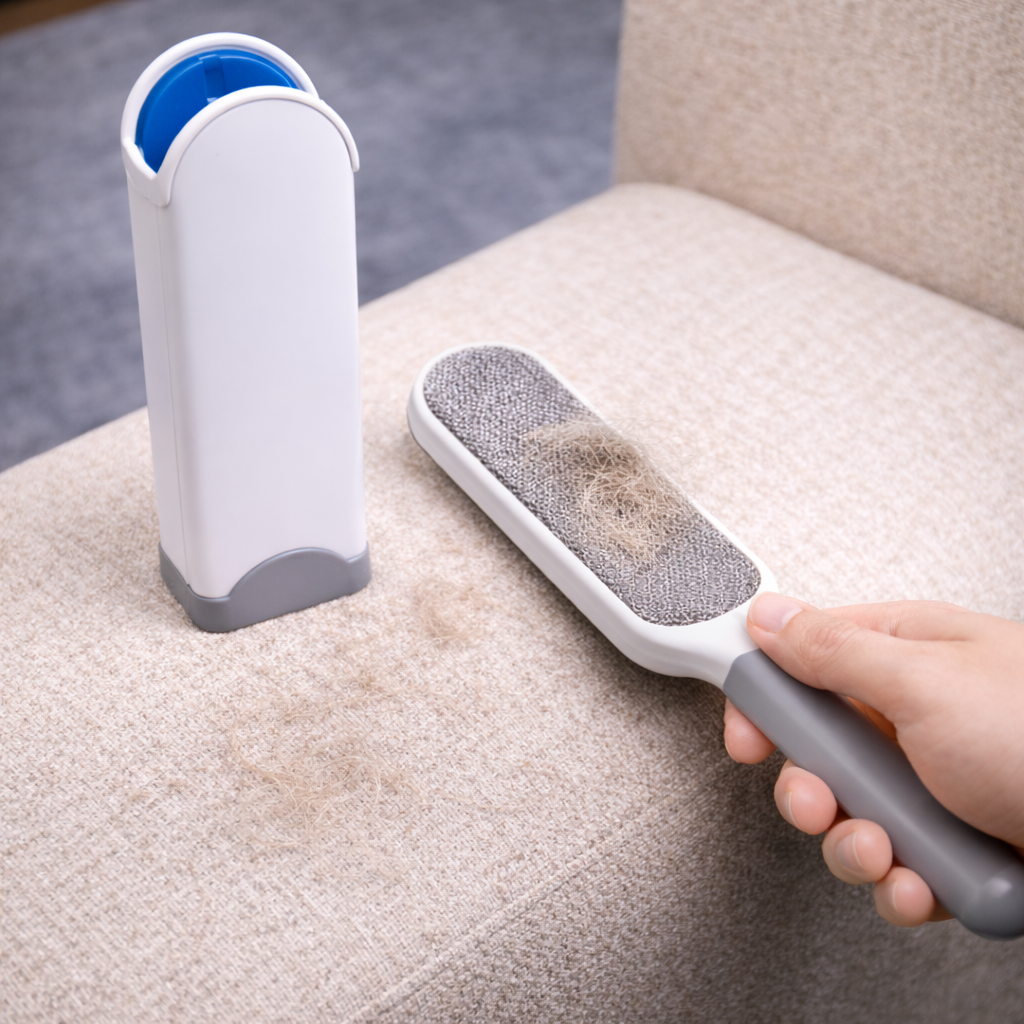 Con el cepillo quitapelo doble cara, elimina fácilmente el pelo de mascotas, pelusa y suciedad en minutos. 🐾 Su diseño eficiente y tecnología electrostática atrapan el pelo desde la primera pasada, sin esfuerzo ni electricidad, dejando tus superficies limpias y como nuevas — en casa y en cualquier momento.